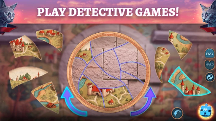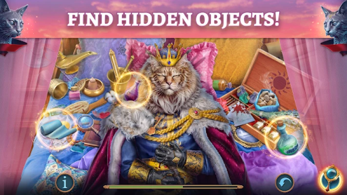 Šajā aizraujošajā slēpto objektu un mīklu piedzīvojumā jums būs jāiegrimst detektīva lomā. Kopā ar neparasto duetu jūs slēpsieties gan noplukušās ieliņās, gan pompozos galma gaiteņos, meklējot apslēptus pavedienus un vācot svarīgus priekšmetus. Katra izvēle un katrs atrasts objekts virzīs jūs tuvāk patiesībai. Trenējiet savu aci, risinot sarežģītas mīklas un atklājot noslēpumus, kas slēpjas katrā ēnā, atklājot dziļu sazvērestību, kas draud ne tikai karalim, bet arī trauslajam līdzsvaram starp kaķiem un cilvēkiem visā valstībā.