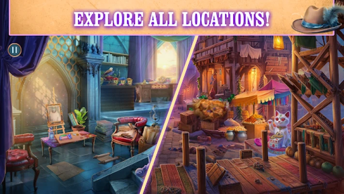 Iegremdējieties aizraujošā stāstu pasaulē, kurā katrs nostūris slēpj noslēpumus. Izpētiet plašo Kastēlijas karaļvalsti, meklējot slēptos objektus un dodoties piedzīvojumu spēlēs cauri burvīgām pilīm, miglainām ielām un mēness apspīdētiem jumtiem. Katra aina ir bagāta ar detaļām un piedāvā unikālus izaicinājumus slēpto objektu spēļu cienītājiem. Trenējiet savu aci un atklājiet noslēpumus katrā ēnā, meklējot paslēptos kaķus un rūpīgi pārbaudot apkārtni. Šī ir ideāla pieredze tiem, kam patīk bagātīgi stāsti un fantāzijas slēpto objektu spēles, pilnas ar kaķu bēgšanas tēmu.