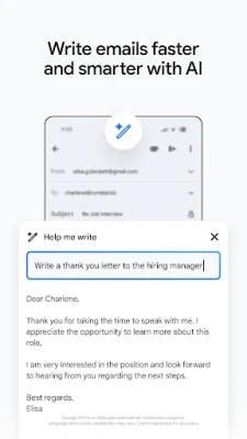 Maksimāla efektivitāte ir Gmail pamatā. Atbildiet ātri, izmantojot viedās atbildēšanas ieteikumus, un rakstīšanas laikā automātiski aizpildiet kontaktpersonu vārdus, padarot saziņu vēl raitāku. Meklējiet informāciju zibenīgi, pateicoties tūlītējiem rezultātiem, prognozējošai rakstīšanai un pareizrakstības ieteikumiem. Viegli pārslēdziet starp vairākiem kontiem un pievienojiet failus, lai kopīgotu tos bez sarežģījumiem. Nekad nepalaidiet garām svarīgu vēstuli, izmantojot tūlītējus paziņojumus paziņojumu centrā, emblēmās un bloķēšanas ekrānā. Organizējiet savu iesūtni ar zvaigznītēm, iezīmēm vai vienkārši velciet, lai arhivētu vai dzēstu. Atbildiet uz Google kalendāra uzaicinājumiem tieši lietotnē. Pat uz jūsu Wear OS pulksteņa varat ātri pārskatīt savus e-pastus, izmantojot īpašu elementu.