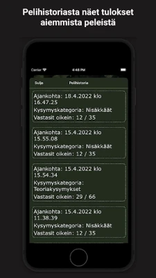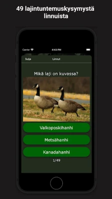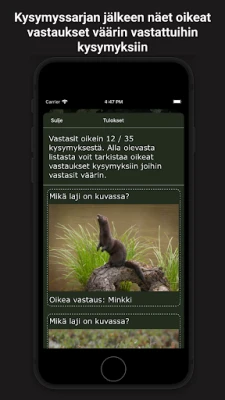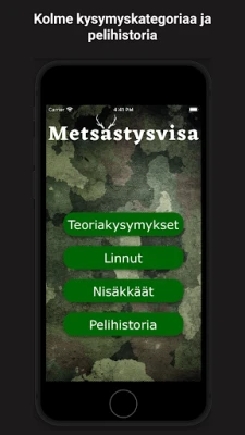Mestästysvisa piedāvā trīs atšķirīgas jautājumu kategorijas, lai nodrošinātu pilnīgu apmācību. Iedziļinieties teorētiskajos jautājumos, kas pārbauda jūsu izpratni par medību noteikumiem un ētiku. Pēc tam pārbaudiet savas zināšanas par sugu atpazīšanu, fokusējoties uz putniem un zīdītājiem – divām galvenajām kategorijām, kas bieži sastopamas eksāmenā. Lietotne ir radīta, domājot par jūsu komfortu: nav nepieciešama reģistrācija, kas ļauj nekavējoties sākt praksi. Turklāt mēs garantējam nepārtrauktu mācību pieredzi bez jebkādām reklāmām, ļaujot jums pilnībā koncentrēties uz materiālu apguvi.