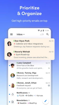 Spark sniedz jums kontroli pār jūsu iesūtni, ļaujot koncentrēties uz patiesi svarīgo. Viedā iesūtne automātiski izceļ personiskos un augstas prioritātes biznesa e-pastus, tādējādi nodrošinot, ka viss būtisks vienmēr ir redzams. Ziņu vēstules un paziņojumi tiek diskrēti sagrupēti, lai netraucētu jūsu darbu. Ar Gatekeeper funkciju varat pārbaudīt jaunos sūtītājus un izlemt, kurš var jums rakstīt, efektīvi bloķējot nevēlamus ziņojumus. Papildus tam, varat atzīmēt svarīgus sūtītājus vai e-pastus, apvienot tēmas vienā rindā, atlikt vēstuļu nosūtīšanu, un pat viegli nosūtīt lielus failus, izmantojot Spark Cloud, kā arī ātri atrast informāciju, pateicoties dabiskās valodas meklēšanai.