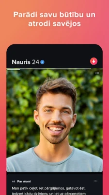 Tinder ir vieta, kur tava patiesā personība un vēlmes ir centrā, neatkarīgi no seksuālās orientācijas. Mēs radām telpu, kurā vari būt autentisks un atrast to, ko meklē. Norādi savas intereses, lai veidotu saderības ar līdzīgi domājošiem cilvēkiem un uzsāktu jēgpilnas sarunas. Ar apstiprinātiem profilu attēliem mēs nodrošinām, ka iepazīšanās ir patīkams pārsteigums. Turklāt, izmantojot video čatu, vari iepazīties un sajust ķīmiju ar jauniem cilvēkiem, ērti neizejot no mājām. Plānojot ceļojumu vai vienkārši vēloties paplašināt savu loku, Tinder sniedz iespēju satikt vietējos un veidot kontaktus visā pasaulē — lai kurp tu dotos, Tinder ir tavs uzticamais ceļabiedrs.